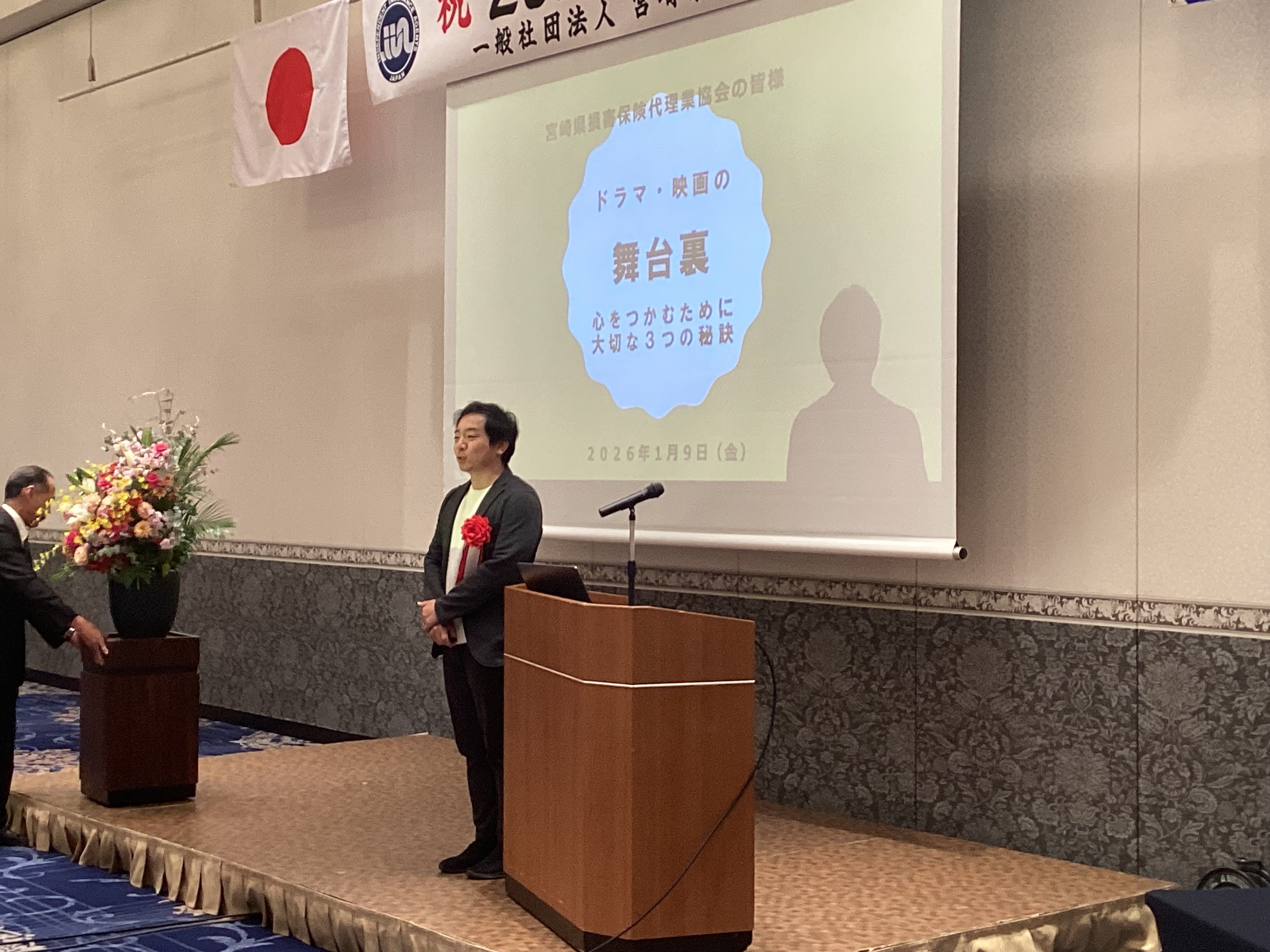 第1部新春セミナーにおいては、講師 堀之内礼二郎氏 都城出身でNHK入局後、ロサンゼルスでハリウッド流プロデュース